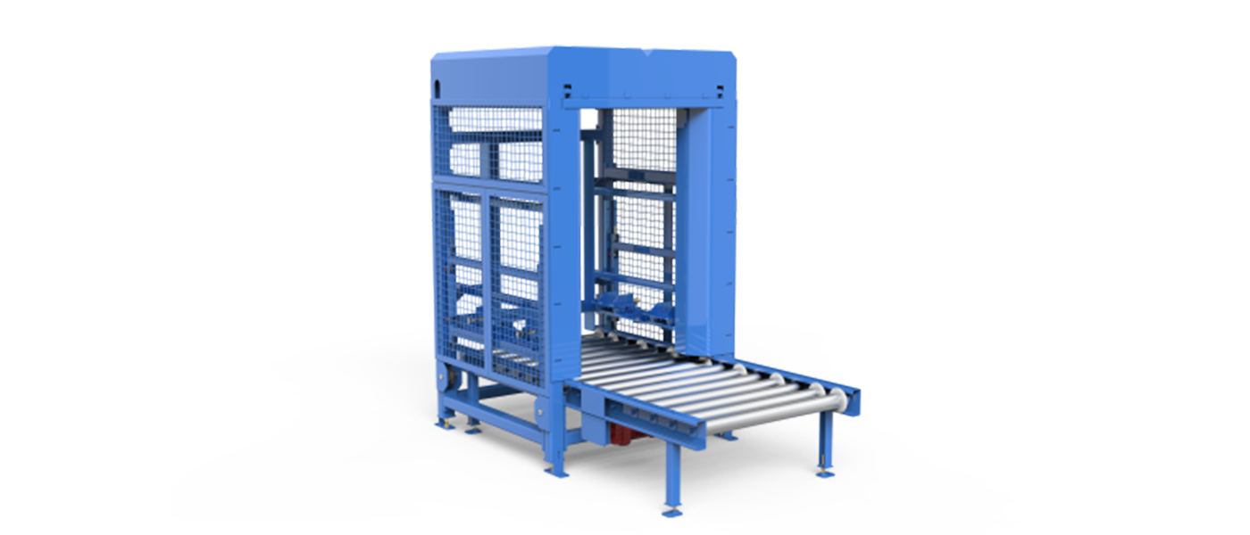 拆码盘机,用来存取托盘。主要由链条/滚筒输送机、升降装置和夹持装置组成,借助机械式码垛,提高托盘搬运效率。它结合了人工操作和全自动化的优点,具有结构简单、空间占有率小、安全性高等特点,可以快速、安全地完成空托盘的拆分和码垛,能满足广大用户的需求。