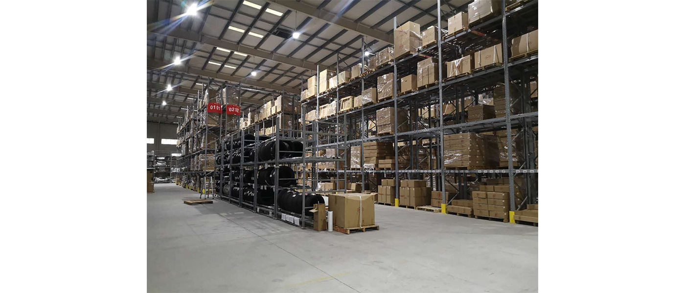 高位货架占地面积约2400平方米,5层,共2500个货位数,可承重1200KG/货位。