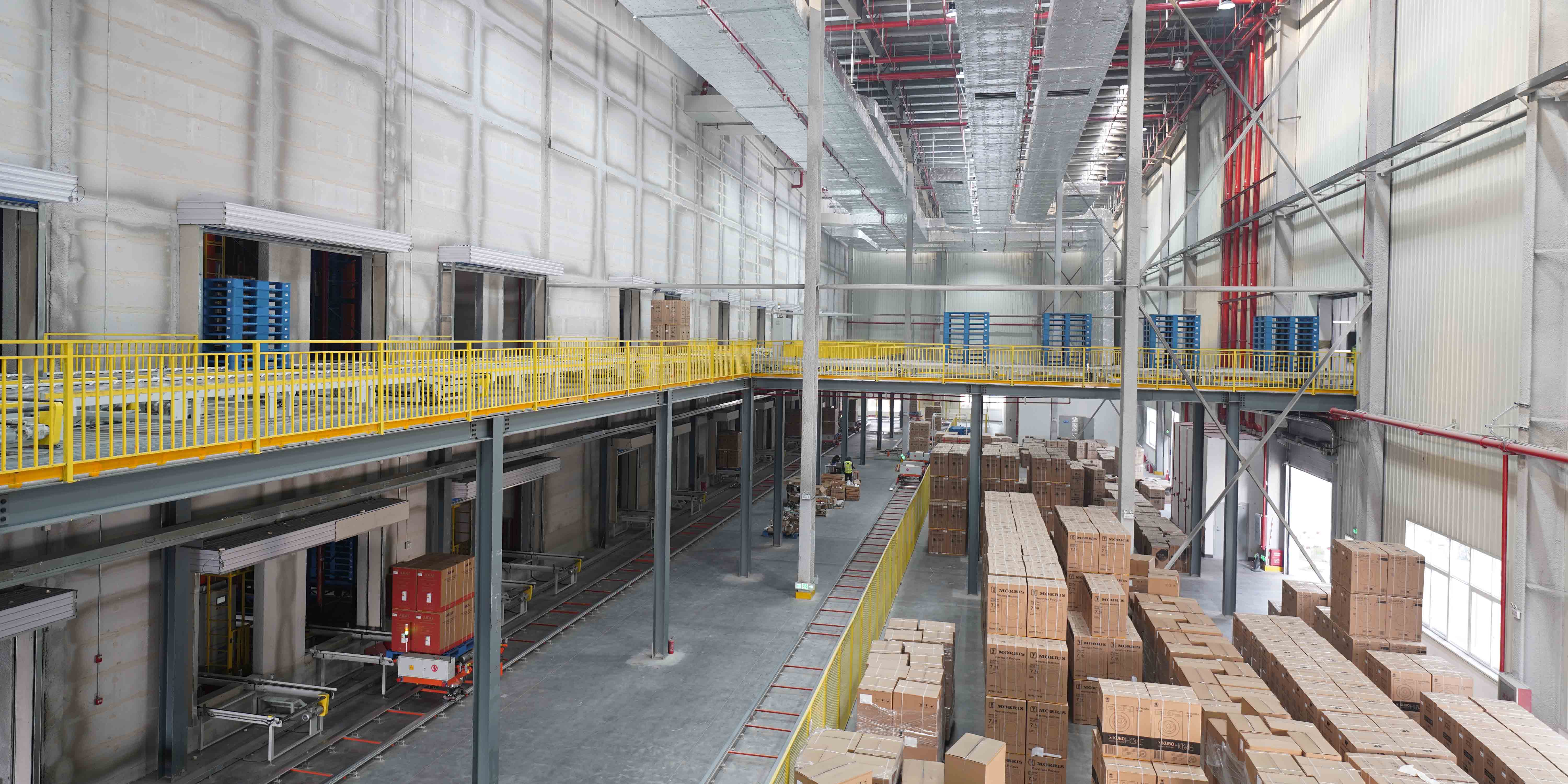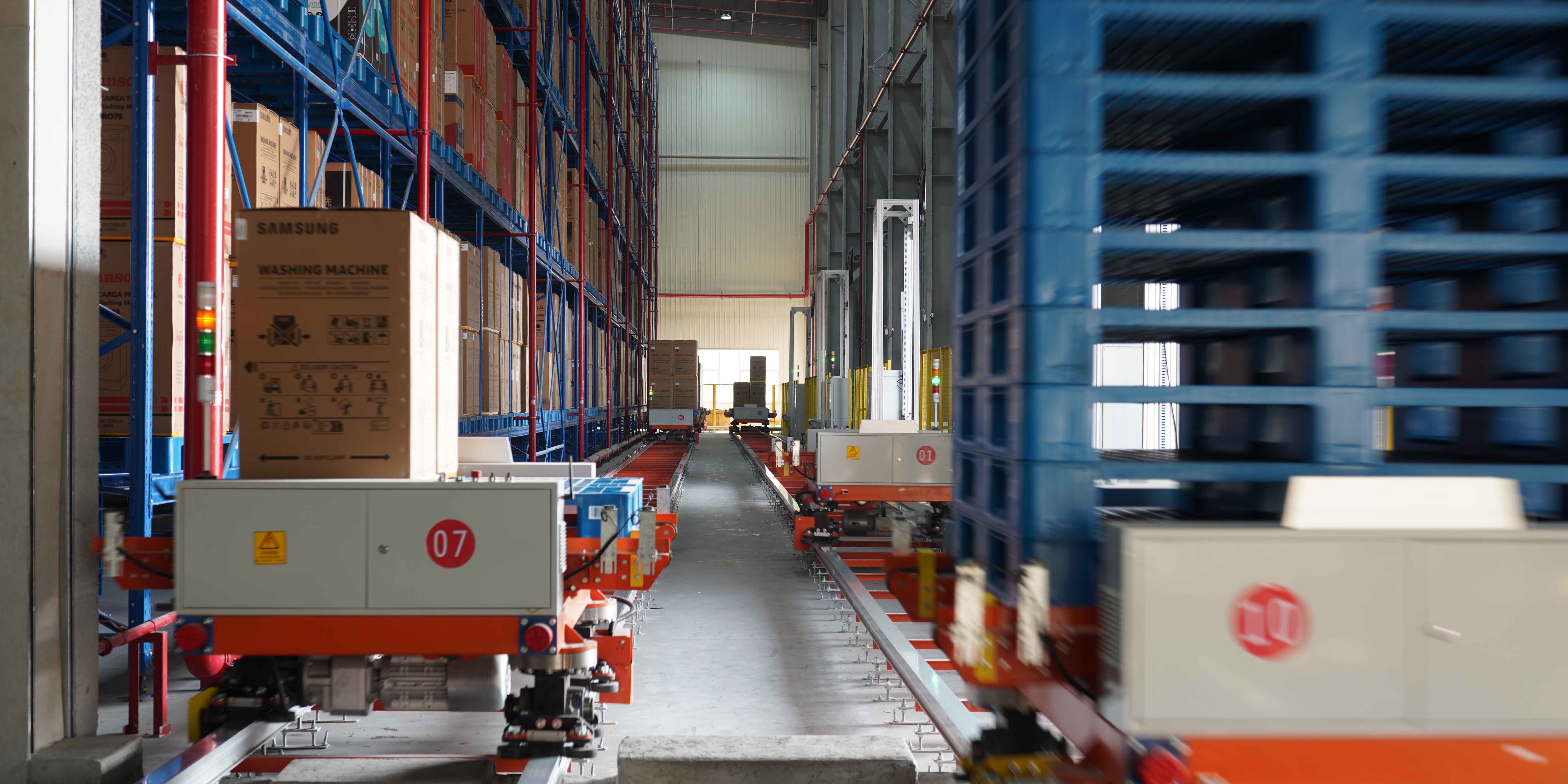 库区占地面积约10000平米,项目主要由12台堆垛机、20000个高架货位、2台穿梭机、2台穿楼层升降机以及配套智能输送系统、货到人智能拣选系统、WCS系统、WMS系统等组成。生产厂房为三层建筑,长227m,宽100 m,每层高6米;成品库房为单层建筑,长120m,宽90 m,高22米(净空尺寸);货位数共19440个。