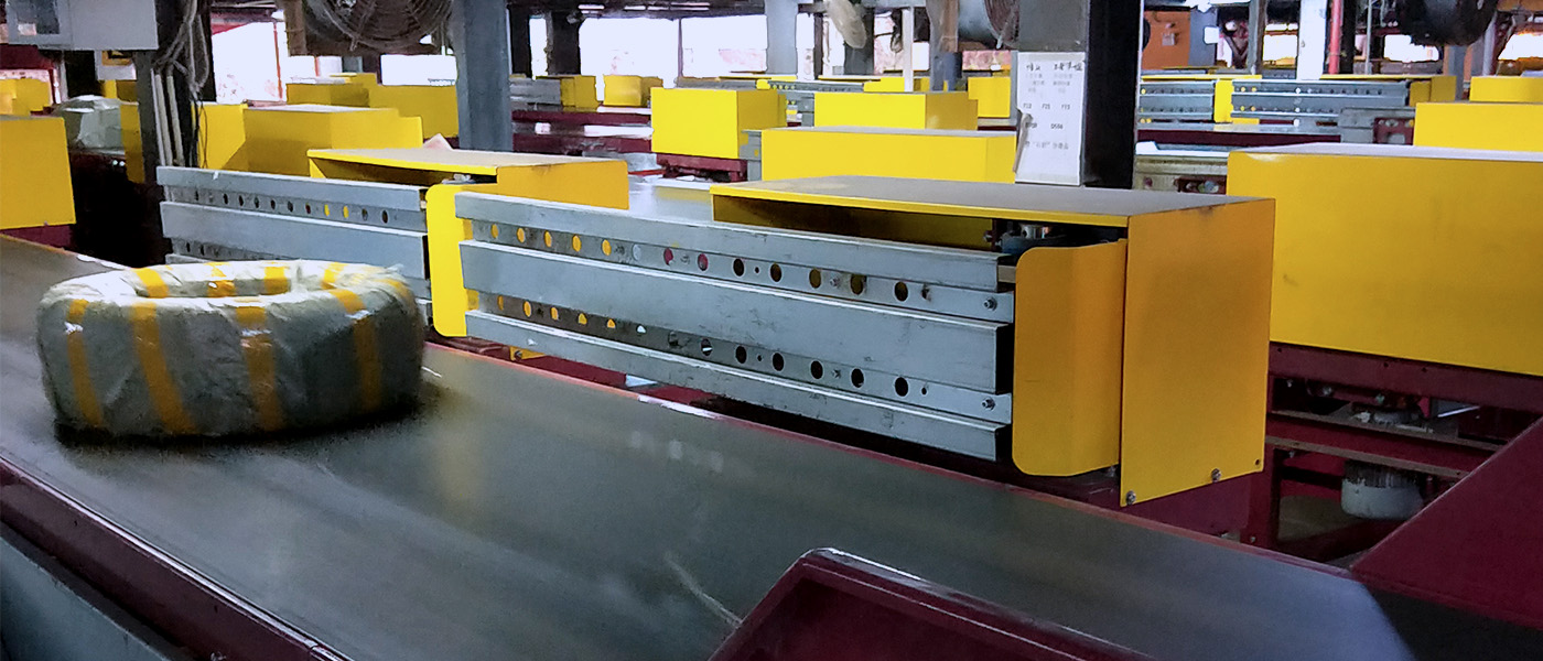 摆臂分拣机装于直线皮带机旁,与滑槽一起组成一个分拣系统,通过机械臂的摆动将货物拨到相应的滑槽,实现货物的分拣。其特点是分拣精度高,适应于纸箱,塑料箱,集包袋等大件物品的分拣。