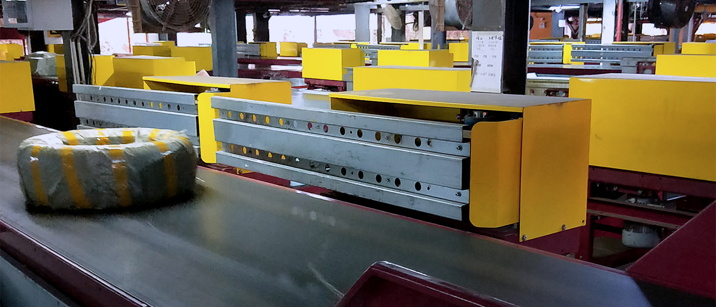 摆臂分拣机装于直线皮带机旁,与滑槽一起组成一个分拣系统,通过机械臂的摆动将货物拨到相应的滑槽,实现货物的分拣。其特点是分拣精度高,适应于纸箱,塑料箱,集包袋等大件物品的分拣。