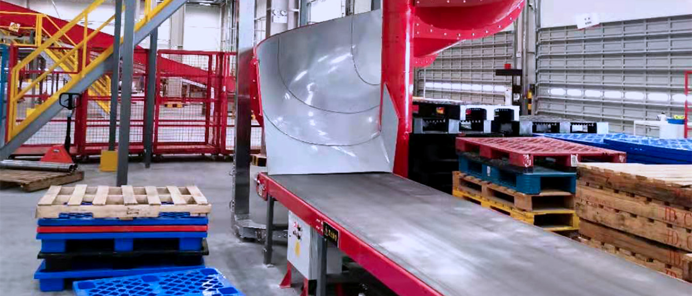 用于分拣货物到不同的输送线,主要包括直滑道和螺旋滑道。