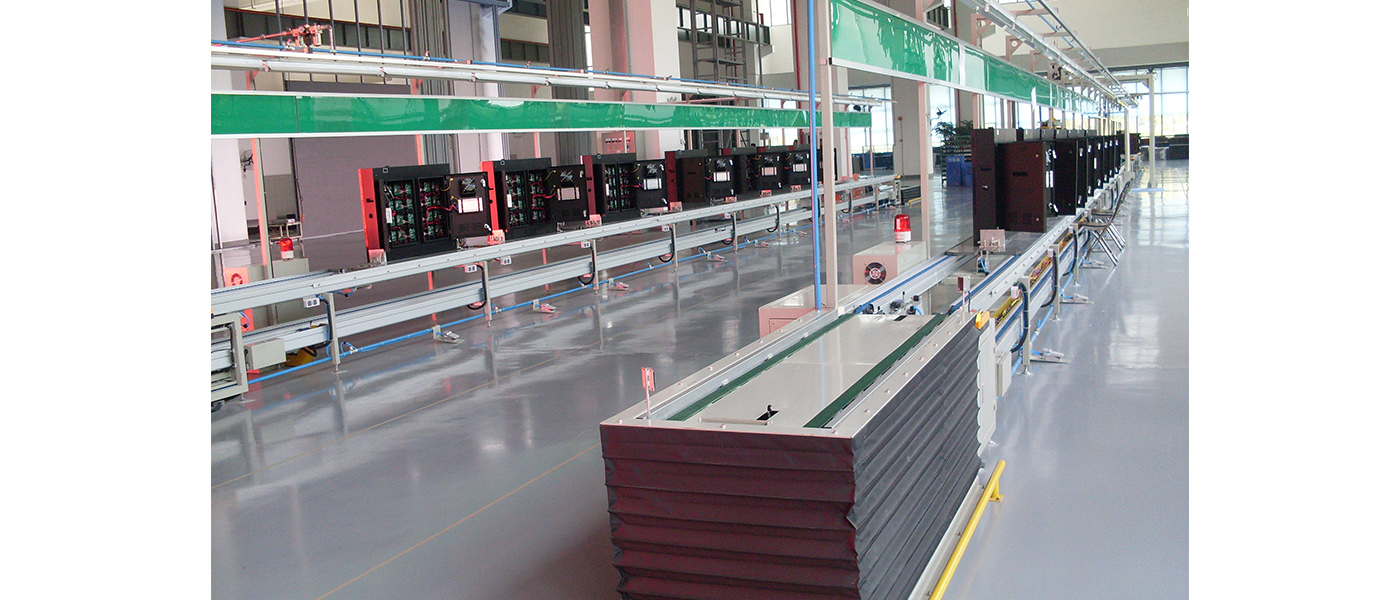 LED总装线主要包合LED显示屏跟LED灯具生产线 ,LED显示屏生产线基本包含以下部分:三防漆喷涂段、带电老化线、灌胶线、干燥线、后段总装测试线、 整屏老化线等。老化与干燥分自动多层式与仓储式两种,LED灯具与屏的装配基本类似,但基本都做光通量测试,老化时间相对也比屏要求较长。